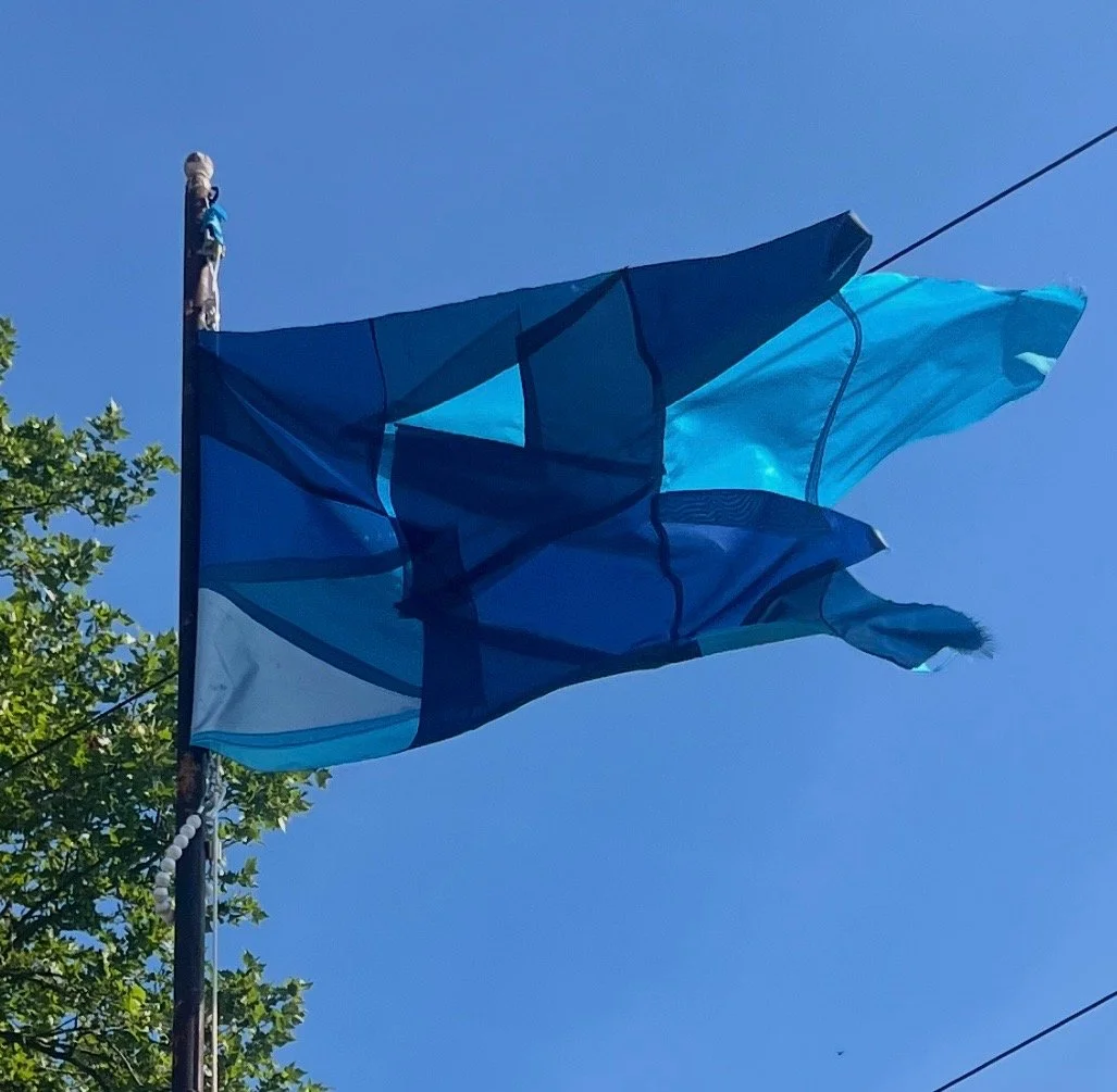 ArtPort Kingston has invited artists, designers, makers, and thinkers to submit flag designs for our new Flagpole Project. Launched in Spring 2025, the Project has been raising one original artist-made flag per month above ArtYard Kingston at 80 Smith Ave throughout 2025. Each new flag, raised in a communal ceremony, offers an opportunity to rethink the meaning and role of flags in contemporary society.